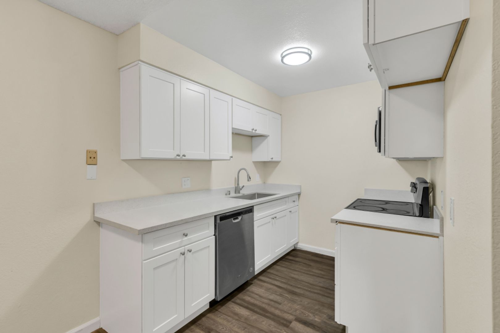 Welcome to the Great 2 Bedroom Condo in a Gated Community, located in the vibrant city of Sacramento, CA. This lower level condo offers two spacious bedrooms and a full bathroom, perfect for those seeking a comfortable and secure living space. The condo features solid surface flooring throughout, New Cabinets, and New Counters, adding a touch of elegance and ease of maintenance. The private patio is an added bonus, providing a perfect spot for relaxation or outdoor dining. As part of a gated community, residents can enjoy an added layer of security and peace of mind. The community also boasts a swimming pool, perfect for cooling off during those warm Sacramento summers. The condo comes with one covered parking space, ensuring your vehicle is protected from the elements. Renters insurance is required for this property, and tenants will be responsible for a $100 fee covering water, sewer, and trash services. Experience the convenience and comfort of this wonderful condo in Sacramento, CA.